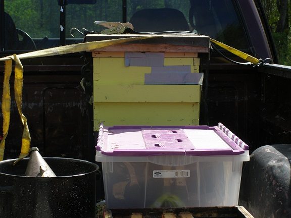We will leave one of the backyard hives where it is until the end of the summer–probably until after the fall nectar-flow is over–to ensure adequate pollination of our family vegetable garden; and then that hive will join the new apiary at Runamuk. I wonder if our neighbors here in town will miss us?