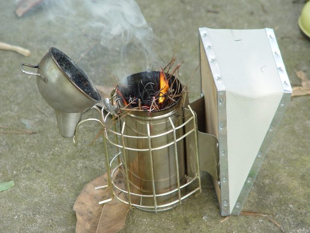 Be sure to use your smoker whenever you are working with your bees. There is a common misconception that smoke puts bees to sleep. It does not. What the smoke does do is to disrupt the pheromone signals that the bees use to communicate–so they can’t spread the news that there is an intruder in the hive. Smoke also triggers the honeybees’ instinct to abandon the hive, thinking that it is on fire, and the bees will gorge themselves on honey–as this is the only resource they can effectively carry to a new location–and they are much less likely to sting with that most valuable resource stored in their gut.