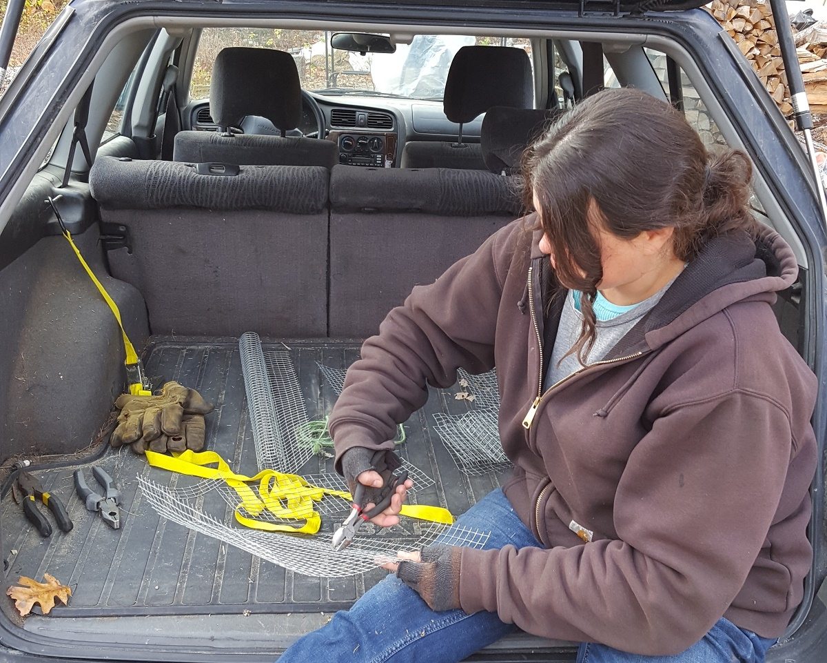 The wire can scratch and dig when you handle it and catches on everything in sight so I like to trim of any picky wires for safety’s sake, and to make handling the mouse-guards a little easier.
