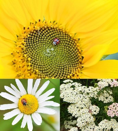 Planting flowers among your crops will attract a variety of beneficial insects, from bees that will aid in pollination, to predatory wasps that will eat cabbage worms, and even the beloved ladybugs. Since lady beetles supplement their insect diet with pollen and nectar from flower, plants that are heavy pollen-producers will lure them to your garden. Composite flowers, or flower-clusters, provide a place for the ladybugs to nestle when they are not hunting.