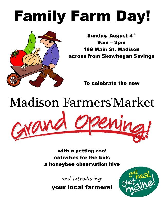 With a family-farm theme we will kick off the start of our 2013 market season with a bang. I’m so thrilled–so proud of our farmers and our support staff for stepping up to make this happen. The town of Madison has provided a portion of the funds we needed for the event, and we’ve had generous financial support from businesses and members of the community. This grand opening is going to be a lot of fun!
