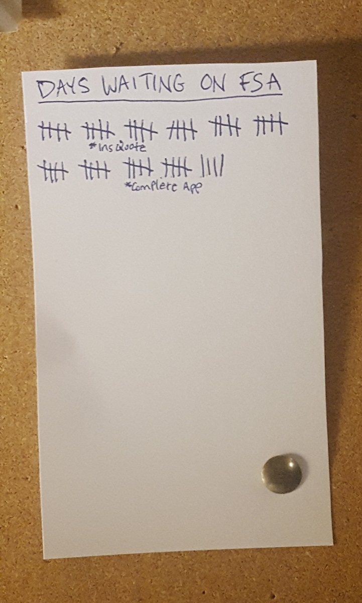 It’s been 54 days today since I dropped off the bulk of my FSA farm loan application with the Somerset County branch of the USDA’s Farm Service Agency. Surprisingly enough, things continue to progress in the direction of ownership of the Swinging Bridge Farm for Runamuk.