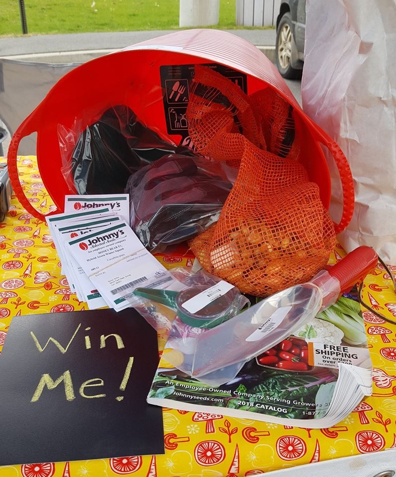At the very end of the evening we raffled off the tub-trug gift basket donated by Johnny’s Selected Seeds, containing an assortment of seeds, garden gloves, a Johnny’s beanie, a trowel and a hand-held seed-sower.