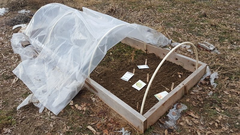 Yesterday was mild here in central Maine, with temperatures reaching 50° so I seized the opportunity to get a jump on the season. I managed to get a few seeds in the ground inside my trusty mini hoop-house (check out these simple plans for my DIY mini hoop-house), which I had left set up on the garden in the fall as part of my efforts at season-extension. I planted spinach, tatsoi, claytonia, and kale─all cold hardy crops that grow quickly.