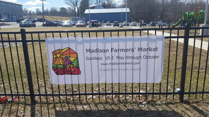 In between all of this, I’ve been plugging away at the Madison Farmers’ Market, for which I serve as market manager. Our local farmers’ market is held on Sundays at the Main Street Park in Madison between 10am and 2pm beginning May 1st and running through October. I’ve recently attended a workshop hosted by the Maine Federation of Farmers’ Markets to learn how to implement and use their Harvest Bucks program so that our market can offer bonus bucks for fruits and vegetables to SNAP shoppers. Our vendors gathered together last week for a paint-party to create some new market signs, and the town of Madison sprang for a new banner for us, so I designed that with our market logo and got the banner up on the fence at the park. We have some exciting things planned this year, but that’s a whole separate blog-post, lol!