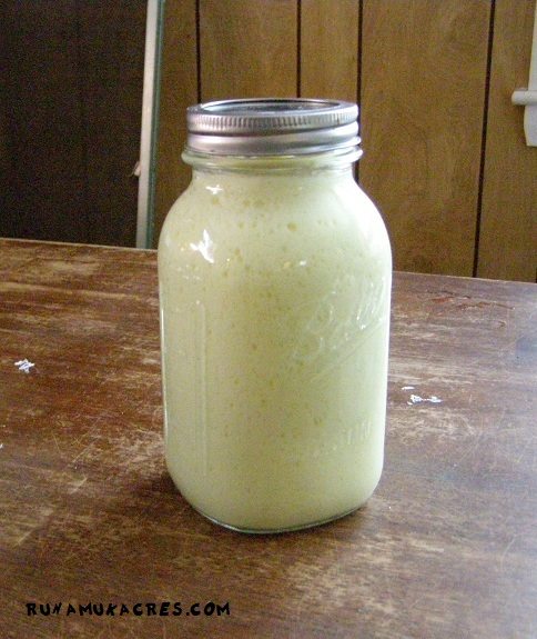 Step 4: Now you can pour it into mason jars–I fill the jars about three-quarters full and then top them off with more water. Cover them and leave the jars 8-hours or overnight.