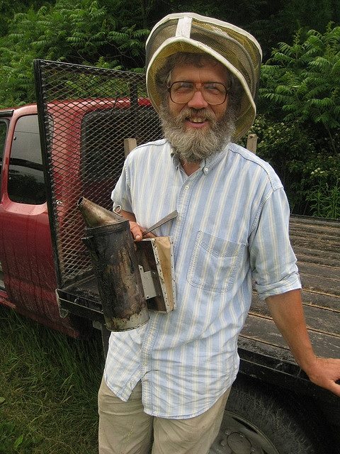 He was a grizzled sort of aging, leather-skinned beekeeper, wearing dark-rimmed glasses reminiscent of the ’70s styles. Quiet-spoken, but knowledgeable, and clearly passionate about nature (an endearing quality in any individual–if you ask me).