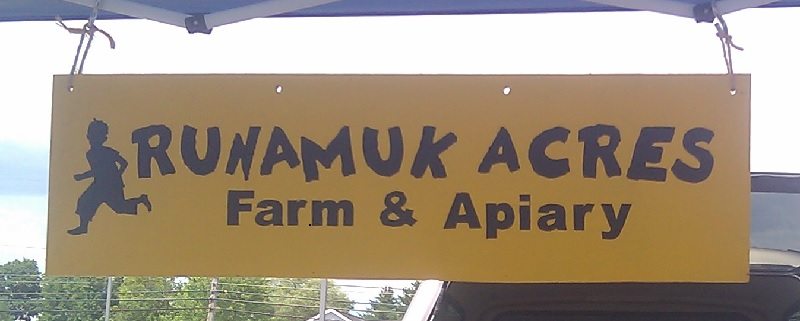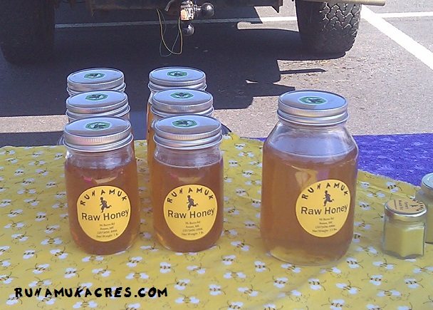 Standing at market, my truck bearing Runamuk signage, my booth sporting the sign I painstakingly painted the Runamuk logo upon. On the table before me–the assortment of herbal salves and beeswax soaps I’ve taught myself to make and which people seem to rave about; and on Sunday I set out beside them neat jars of golden honey that shone in the morning sunlight.