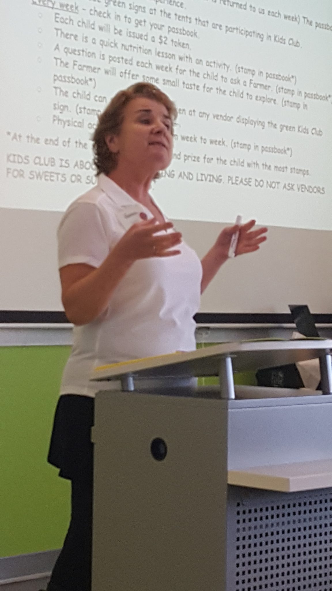 One of the presentations I enjoyed most was titled: “Bringing the whole family: integrating youth and family programming at the farmers’ market”. I like to think that the Madison Farmers’ Market is a family-oriented market. We set up at the town park where families can play at the playground before or after their visit to the market. We also have a number of little ones that join our vendors at the Madison Farmers’ Market and the farmers and I have talked about ways we can incorporate more family-oriented activities over the course of the market season. There were 4 presenters for this topic: Deb Barnett of the Kennebec Cooperative Extension, Trisha Smith of the Piscataquis Cooperative Extension, Nancy Wood of the Knox County Community Health Coalition, and Elizabeth Siegel of the Union Farmers’ Market.