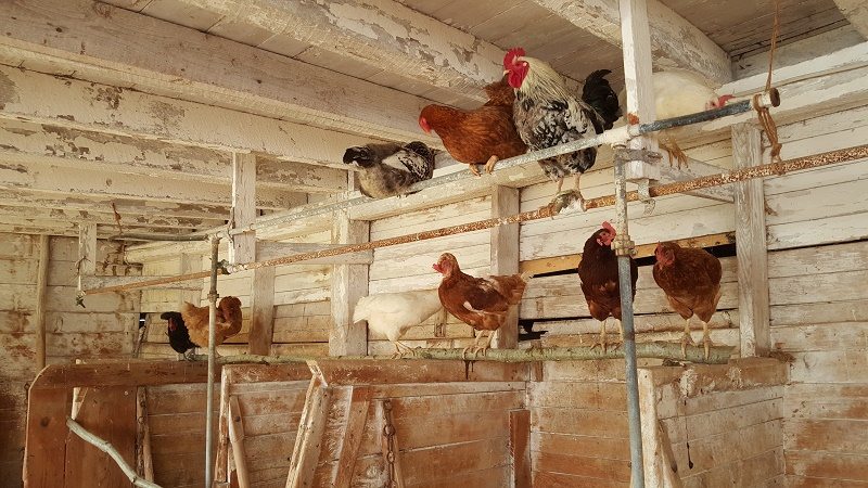 With the addition of so many new birds I was compelled to readdress the housing situation for the flock. The hoop-coop was full to capacity after we took in 4 laying hens from a co-worker at Johnny’s, and a prowling skunk had already devoured the 6 little chicks that had come with my broody hen, so the flock was a little wary of the structure–it was time to move them into the barn.