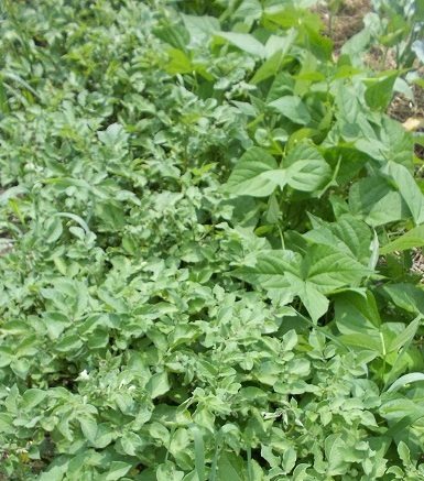 An interesting note: the only potatoes seemingly afflicted by the beetles is the Purple Majesty variety. I’m not sure if we somehow missed that bed when we were picking beetles and squishing fat orange beetle-eggs, or if for some reason the beetles really like the purple variety, but I maintain vigilance anyway of the other three beds of potatoes-along with the potato towers. As of yet, there are no disgusting slug-larvae to be seen.