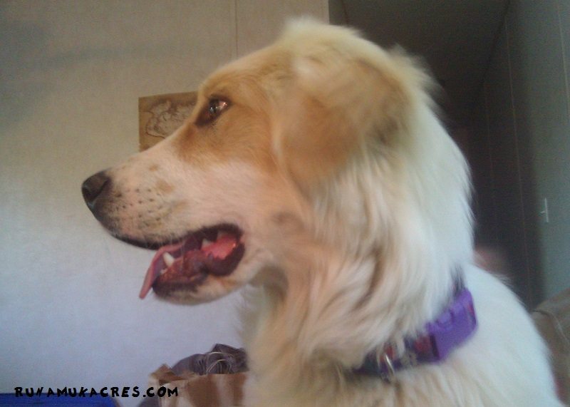 I’ve worked with her through all of her fears, some still persist, but we’ve made good progress. The last time she had to go to the veterinarian’s office to have porcupine quills removed she actually went into the building on her own–I didn’t have to carry her in–and at almost 75 pounds–I can’t tell you how happy I was not to have to pick her up!