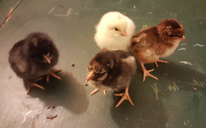 With the exception of a 4-hour power outage Wednesday afternoon thanks to Hurricane Joaquin, which left the chicks without a heat lamp for the duration, everyone is looking great. All 26 chicks survived their ordeal through the US Postal system, and are eating, drinking and growing normally thus far.