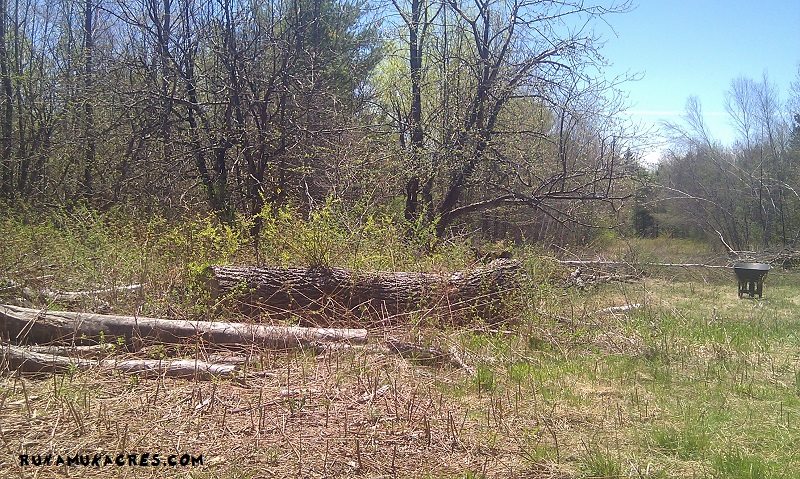 We had some selective cutting done last year in the forest of our property, and the logging crew left behind quite a mess which had to be cleaned up before we could have any tilling done–bits and pieces of branches, tree limbs hidden beneath the dried and toppled grasses, and even several truck loads of firewood that all had to be moved. Apparently things had begun to warm up last year while the logging crew were here, and Keith had asked them to finished up early, because we didn’t want the field all rutted up by the skidder. The crew left behind a number of full sized logs that had not yet been chunked up or split into firewood–so those had to be moved too. And to top it all off, raspberry canes and honeysuckle have been claiming parts of the field for the last few years.