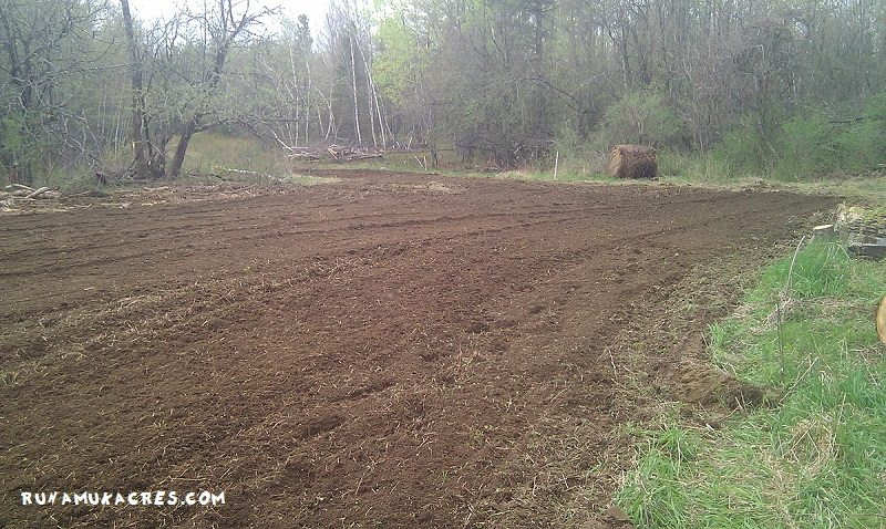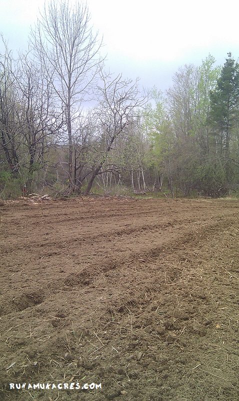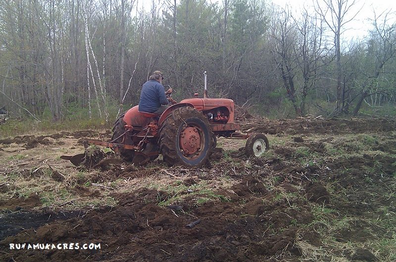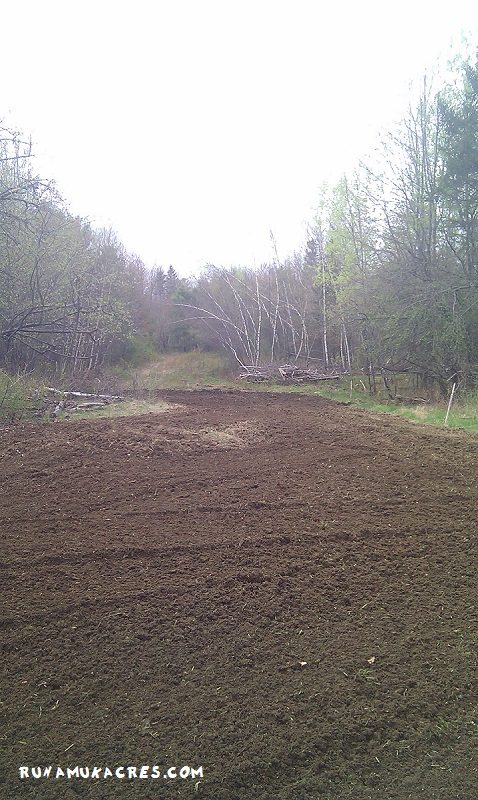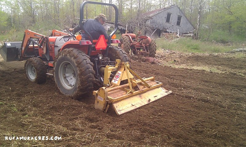 Since we do not yet have a tractor here at Runamuk, I hired a local man named Ken Mclean to do the job of plowing and tilling the field. We do have access to a rototiller, but the shear size and scope of the project led me to hire someone with a tractor who can do the job better and faster than Keith would be able to with the tiller. That being said, we have a smaller plot further up the hill near the homestead, where Keith will till another garden bed.