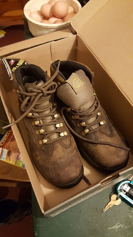 So I went into Reny’s and for the first time EVER in my life I picked out a pair of footgear that was priced over $100; these were quality Timberland waterproof leather hiking boots and I went and put them on layaway there. I was pleased as punch with myself for making such a commitment to─well to myself. Afterall, how can I get all the hard work of farming done if I don’t take care of myself, and your feet are a pretty important part of the body for accomplishing most labors, lol.