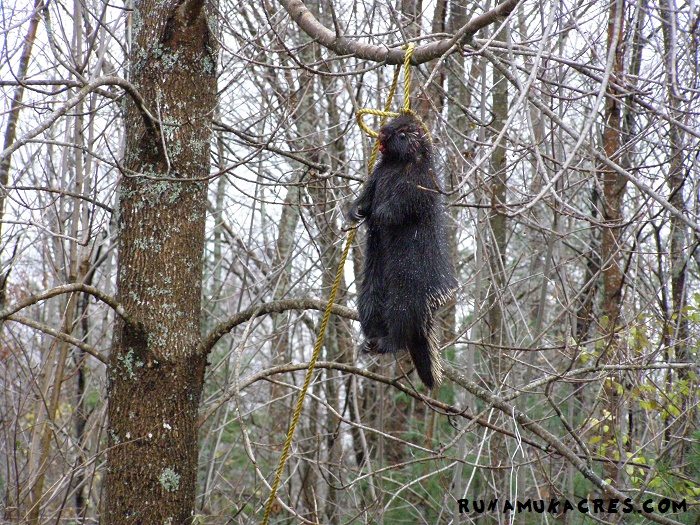 So that’s what we’re doing about our porcupine troubles here at Runamuk. We have a pretty high tolerance for animal-interactions anyway, since we’re so passionate about nature and wildlife. Yet maintaining proper biodiversity of all the species in this habitat is our responsibility as stewards of this land, so until such time as the porcupine population is reduced to a level that the forest can maintain, we will continue to hunt them. And because we are loathe to squander the animal’s life–we will eat them, feeding our family so that we may continue our work here–reclaiming this old farm.