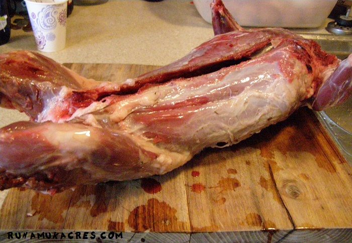 I had to look it up online for the answer–and most results said to roast it in the oven with root vegetables like potatoes and carrots. So I did. And that was the chewiest meat I’ve ever tasted. Keith wouldn’t even eat it because it still looked too much like a porcupine, and because–having been raised on meat from the grocery store–we’re still adjusting to butchering our own. There’s an element of self-doubt that comes with acquiring these new skills, you’re wondering if you did it right, worrying about what could happen if you did it wrong. But the kids exclaimed with gusto that it was “the best porcupine they’d ever tasted!”