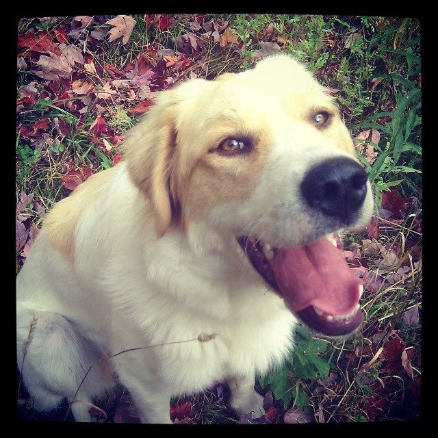 This dog loved hugs. And I loved burying my face in that soft white and yellow fur.