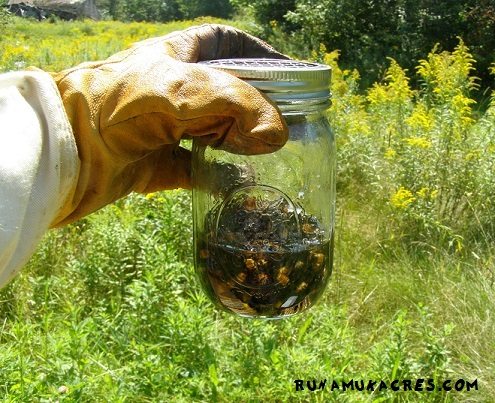 The alcohol-wash is one of the most effective methods for assessing mite infestation levels in your hives. Test for mites – This is something that I strongly urge beekeepers to do. In the fight against the Varroa “destructor”, and to maintain healthy hives, it is crucially important to know what the level of infestation is inside your hive. Take a sample–there are a variety of methods (ie-alcohol wash, ether roll, powdered sugar roll. drone sampling, etc.)–count the mites, and then determine if that number is within your threshold tolerance. If the number exceeds your tolerance level–this is a good time of year to treat your hives, or to take some other form of action to decrease the mite loads in your hives.