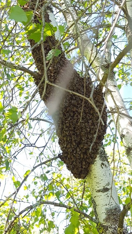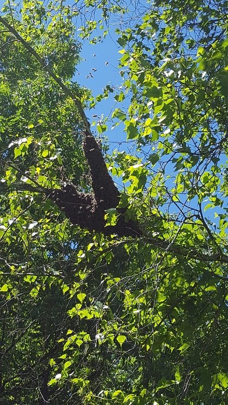 Sure enough it was a large mass of bees on that birch tree! My heart jumped up into my throat and then began racing as my mind worked through the possibilities. Could I reach them? Could I actually successfully capture the swarm?