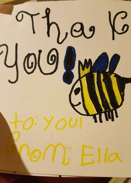 I really enjoy these kinds of educational outreach─teaching the communities I serve about pollinators and the crucial role they play in our world. The kids may have been a little chaotic, but they were sweet and respectful and I went home with a thank you card they’d made for me. It gives me hope that people might learn to respect and tolerate─if not appreciate─the creatures we share the Earth with, for every critter has a role, no matter how big or small, we all have a part to play in the interconnected web of life.  This is what inspires me to keep doing what I do.