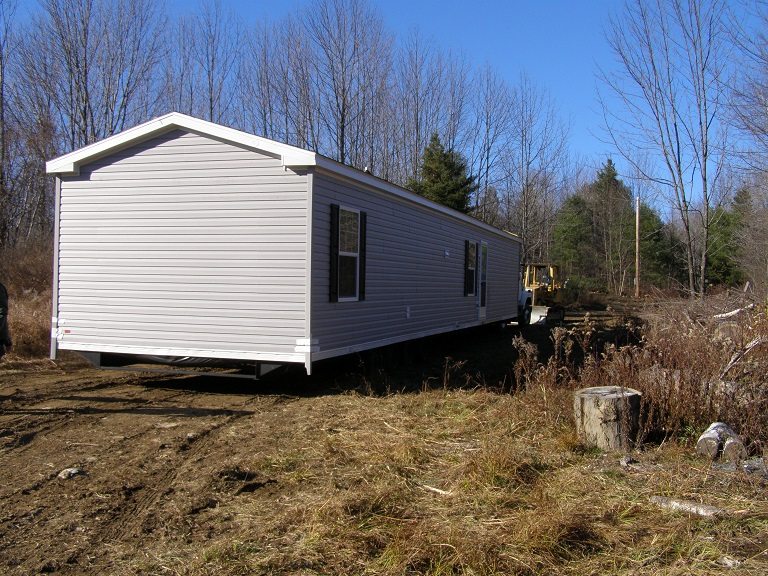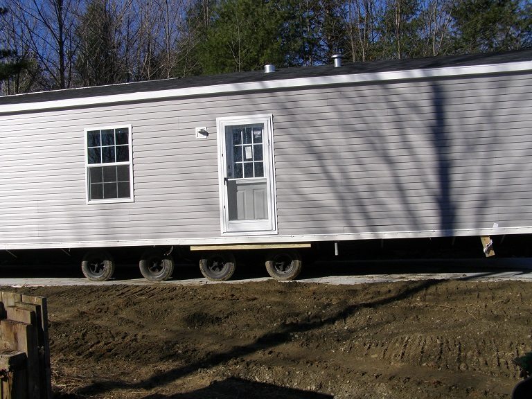 Because there was a day of rain after they’d smoothed the rutts in the driveway, the soil was soft and the crew wound up using the bulldozer to pull the truck and trailer up the hill. Then–because I want things the way I want them regardless–they used the bulldozer to settle the trailer in place–backwards. 😉