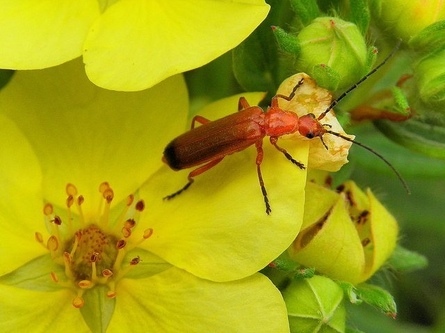 Flowers typically visited by beetles are bowl-shaped with exposed sex organs. They are usually white to dull-white or green in color, and possess a strongly fruity smell. The flowers may be single or clustered, but will offer the beetles moderate amounts of nectar.