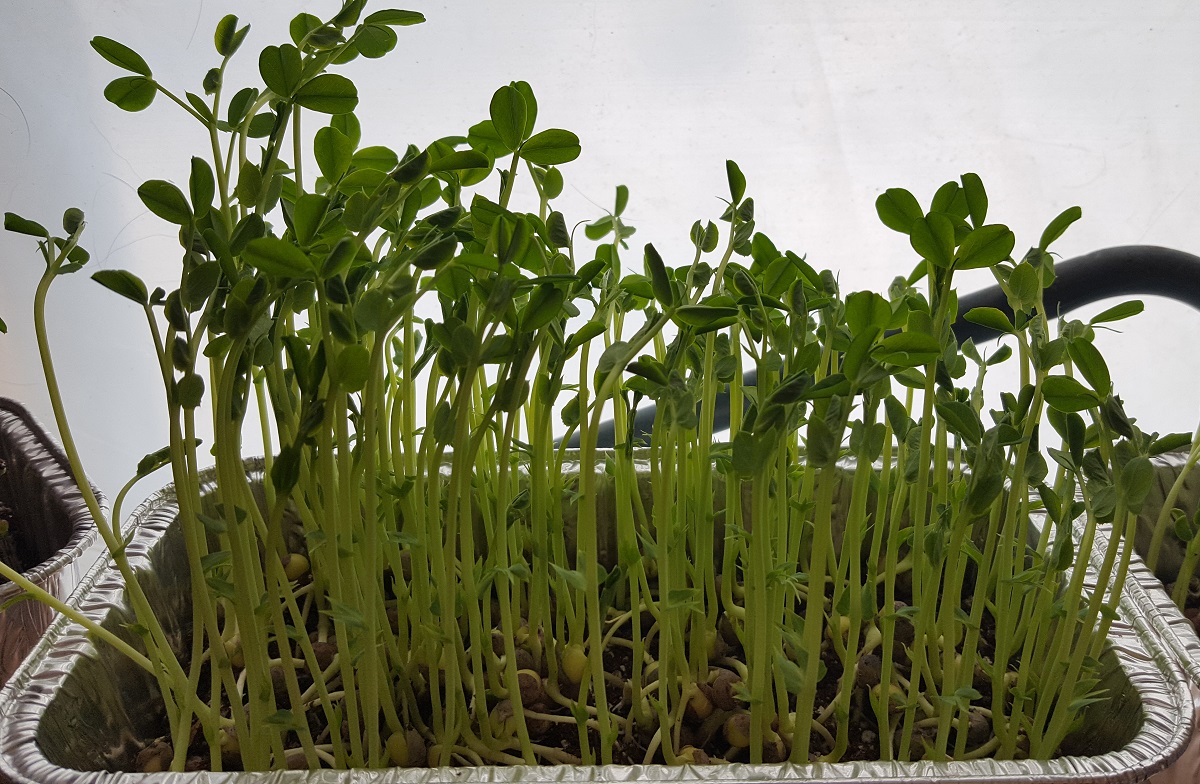 Some of my pea shoots sitting in the window.