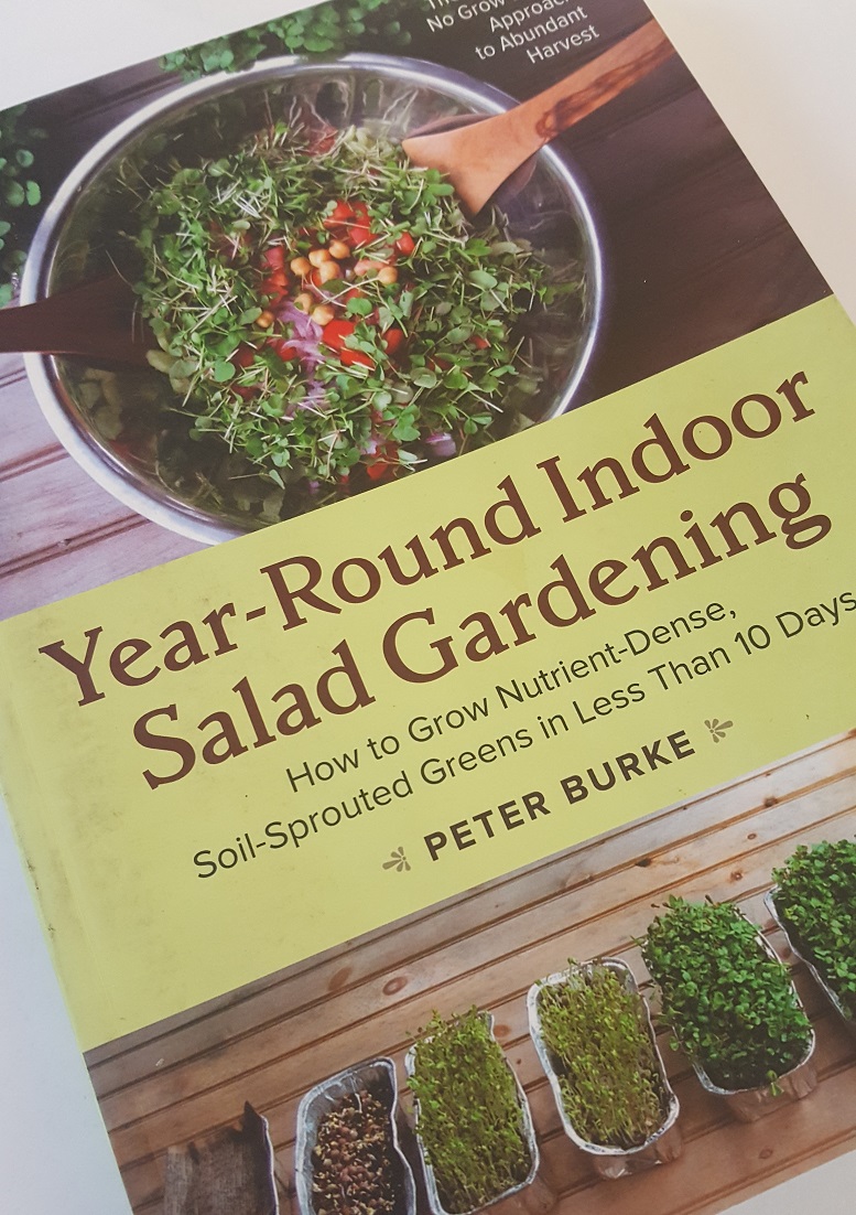 Year-Round Indoor Salad Gardening, by Peter Burke is a great addition to your homestead or farm’s resource library. This book has inspired me to grow shoots every winter from now on!